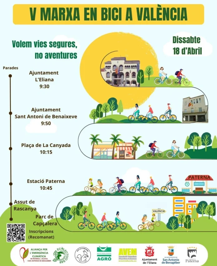 Diversos col·lectius i entitats celebren hui, dissabte 18 d’abril, la V Marxa en Bici a València, una iniciativa que s’allargarà durant tota la jornada amb l’objectiu de reivindicar una mobilitat més segura i sostenible sota el lema “Volem vies segures, no aventures”.